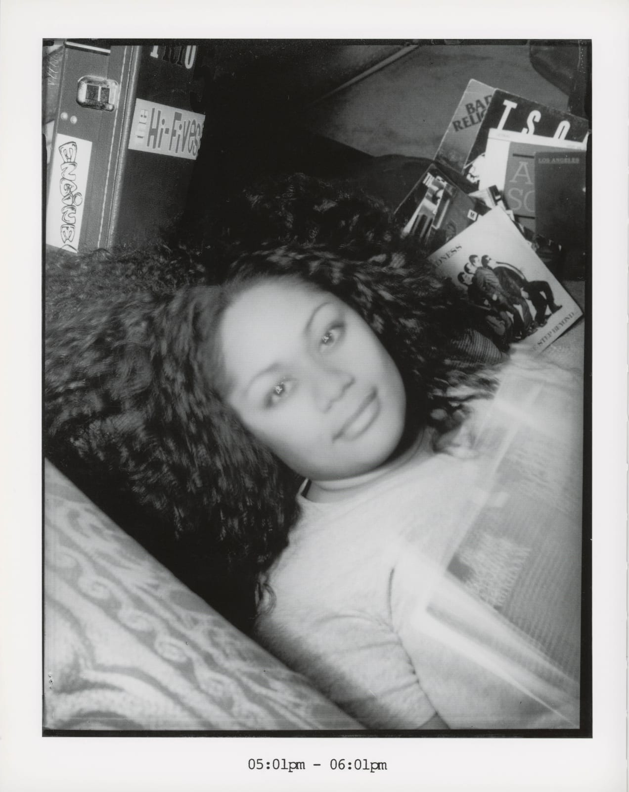 Rather than pursuing formal studio portraits, Shook captured the subjects’ spontaneous gestures and body language in the presence of the imposing optical machine. In the lower frame, a prop trunk — used as a platform — remains visible as part of the scene’s original context. While the themes of family, friendship, and collaborative acts are at the core of the work, Shook's Polaroid is reminiscent of portraiture from a bygone era, yet disarmingly direct and intimate.